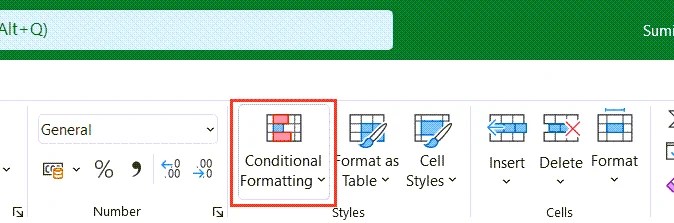 - Haga clic en el icono Formato condicional (en el reunión Estilos)
